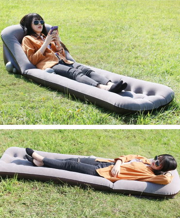 The Inflatable Bed offers a modern outdoor activities solution. It features a portable air pad that can be easily inflated and folds up for easy transportation and storage. This inflatable air bed can be used anywhere, at the pool, the beach, or by the lake. The flocked fabric material is comfortable and soft, durable, and washable. The curved design allows for a close fit between the inflatable bed and the human body, providing great support for an overnight rest in comfort. Includes carry bag to keep everything organized while on the go.