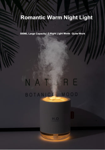 TWO MIST MODES: This mini humidifier has two modes. When you press the button the first time, it will continuously spray for 6 hours. When you press again and it will intermittently spray (stop 2 seconds) for 12 hours. 500ml large capacity produces longer mist.