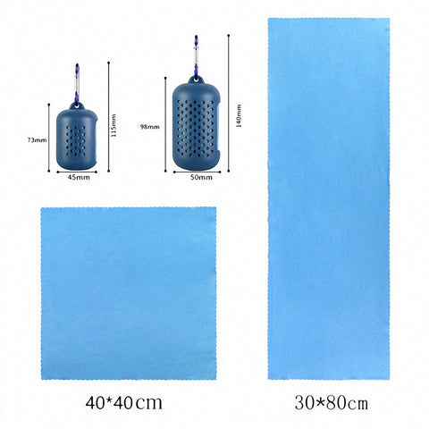 Material: The Cooling Towel is Made of microfiber, breathable materials, a food-grade silicone pouch, and Metal Carabiner. It is Silky Soft, Comfortable Feel, and Quick to Dry, Not Pilling