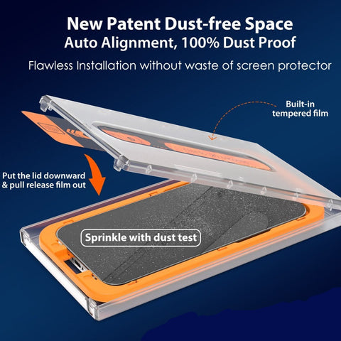 - The easiest and latest dust-proof installation box. Just accurately aligned, you will get dust-free and bubble-free tempered glass.