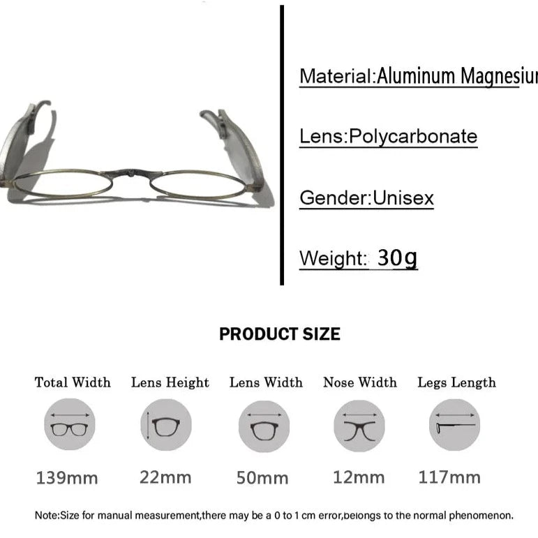 The Read Ease Foldable Mini Pocket Eyeglasses are a marvel of convenience and portability in the world of vision accessories. These glasses combine the practicality of reading glasses with an innovative design that allows them to rotate and fold into a compact, pen-shaped form.