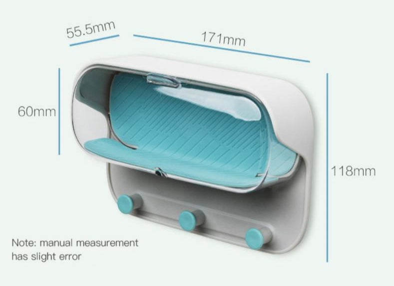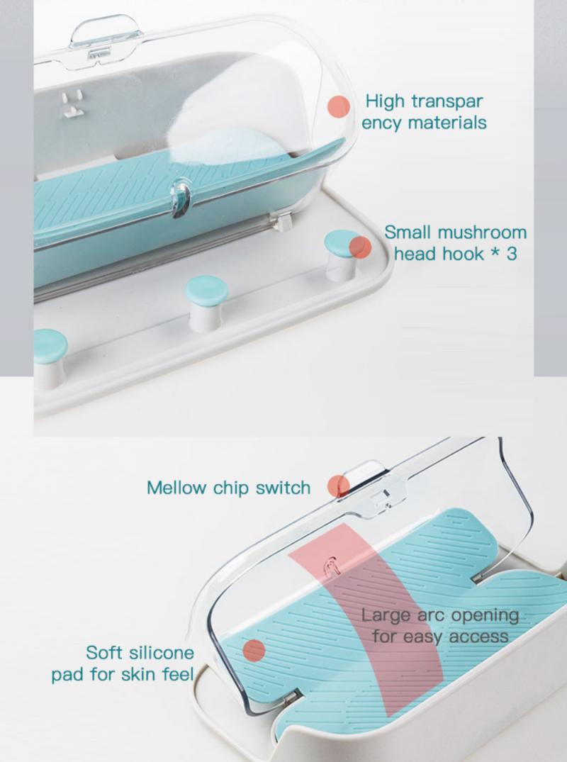 Material: HIPS (body), PET (transparent lid), silicone (inner lining), HIPS (hook)
