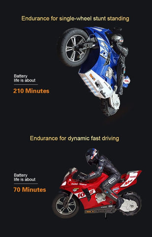 The product can be stabilized and balanced by the traction control of the rear wheel rubber balance wheel, subverting the traditional remote control motorcycle toy. The body is designed to fold and store the tripod, which is more convenient and realistic