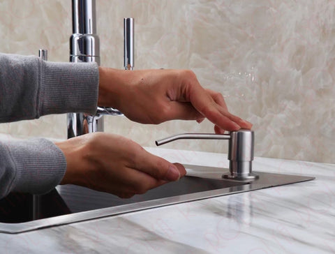 The sink countertop soap pump allows you to dispense dish soap, hand wash detergents or soap solutions. The soap dispenser is extremely easy to install in just a few short minutes and simply remove the dispenser head and refill with liquid soap. It is solid and durable, made of stainless steel and ABS material, there is no leakage worry.