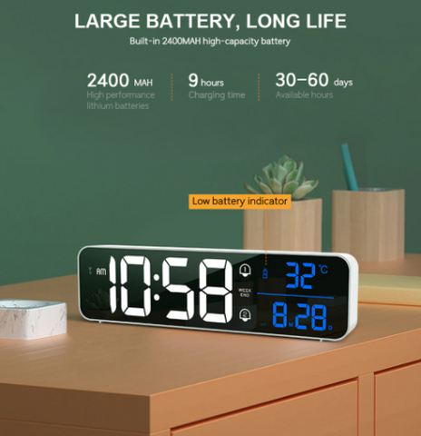 Support Battery & USB: The desk alarm clock has excellent battery life. Built-in 2400mah high capacity Battery. You only need to charge for 5 hours to use it for about 30-60 days.