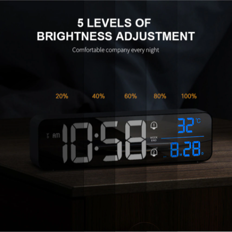 5 Level Brightness & Convenient: The alarm clock has 5 levels of brightness, 20%, 40%, 60%, 0%, and 100%, 5 levels of brightness adjustment. Comfortable company every night, you can manually adjust the brightness. It protects your eyes at night and saves energy. 12 or 24-hour system can be changed. This led clock has a memory function; all settings will be remembered.