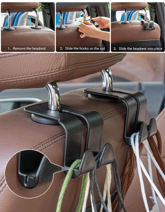 These space-saver seat hangers are a practical and efficient solution for keeping your vehicle organized and clutter-free. These hangers easily attach to the back of car seats, providing additional storage space for hanging bags, coats, umbrellas, and more. Their double-hook design maximizes space usage, making them ideal for families, commuters, or anyone who needs to optimize the organization in their car.? ??