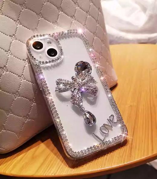 This sparkle iPhone case is a glamorous and protective accessory for your smartphone. Adorned with a dazzling diamond bow and a shimmering shell-like finish, this case adds a touch of elegance and sophistication to your device.??