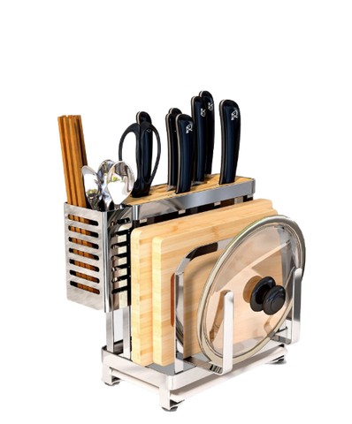 Multi-function storage kitchen knife can store about 5-6 knives, chopping board, pot lid, whetstone, scissors, chopsticks, bottle opener, spoon, etc.