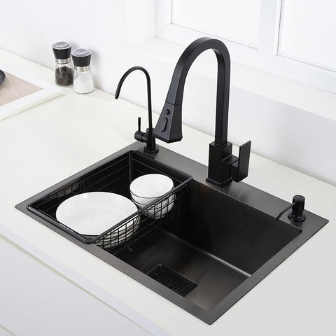 Ease of use- single handle kitchen faucet black operates with a shorter handle, allowing for installation with little backsplash clearance. High arc kitchen faucet spout height, making cleaning more comfortable.