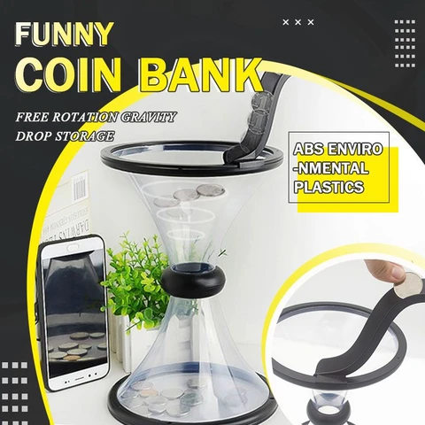 - Enjoy the experience of coins in motion upon dispensing them down a spiral bowl.