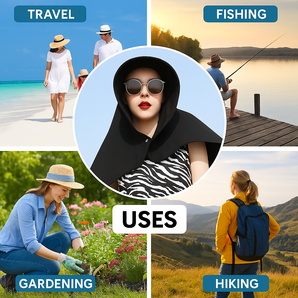 Full coverage: Protects face, neck, and shoulders from the sun.