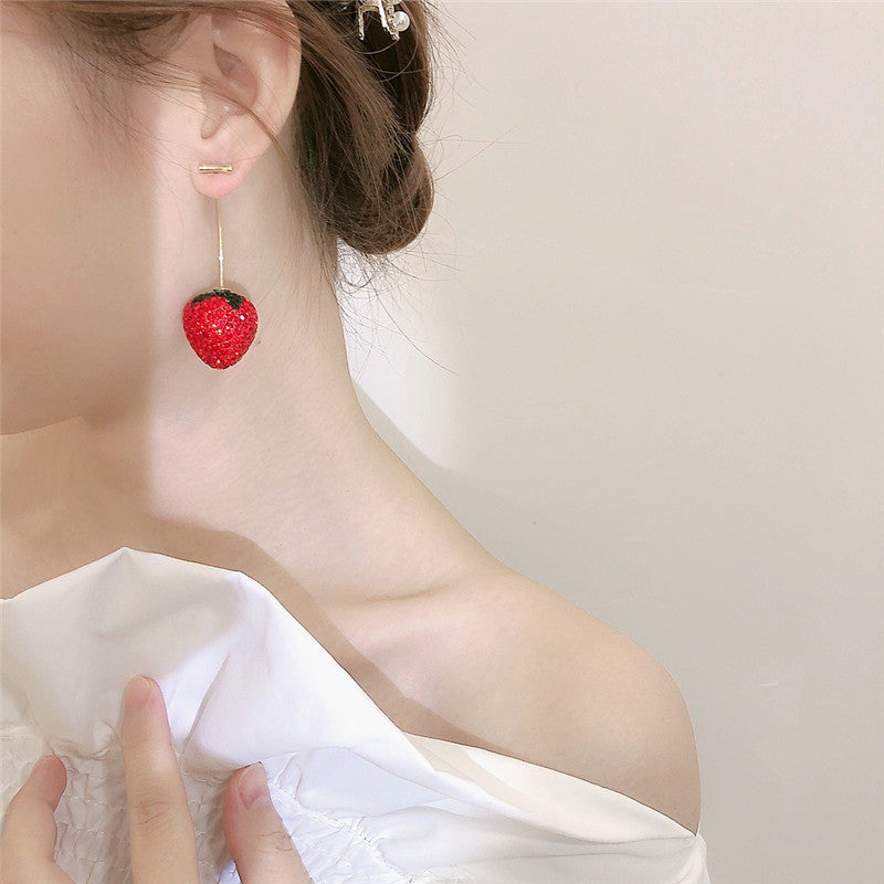 These sweet strawberry zircon earrings are the perfect addition to any outfit. With their delicate design and sparkly zircon stones, they add a touch of elegance to any look.??