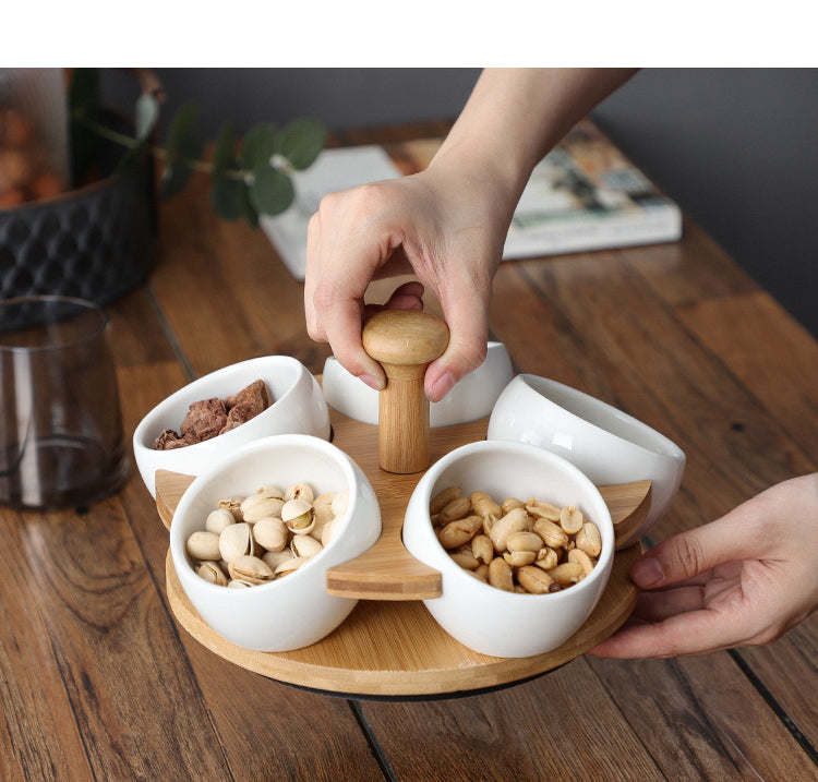1x??Tea Time Bamboo Porcelain Snack Tray??