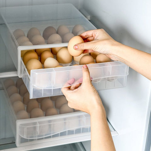 A great solution for refrigerator organization! This transparent egg storage drawer container is a great addition to any kitchen. This egg storage drawer will keep your eggs and egg products organized and separated while in the refrigerator. It provides great protection from damage, and your eggs will always be easy to find.