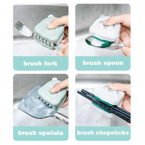 - With ergonomic design and double-sided bristles, the cleaning brush allows you to quickly clean dishes, cutlery, etc. without scratching your fingers.