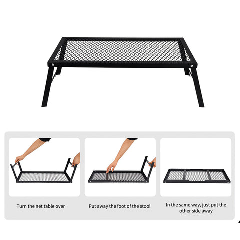This portable, folding picnic table is ideal for the outdoor enthusiast who’s constantly on the go! This item is great for camping, sporting events, and even picnics. Can be used as a grill net. Cook your food miles from your kitchen with the over-fire grill net. This table folds down to a flat surface or for use as a grill with the over-fire grill net.