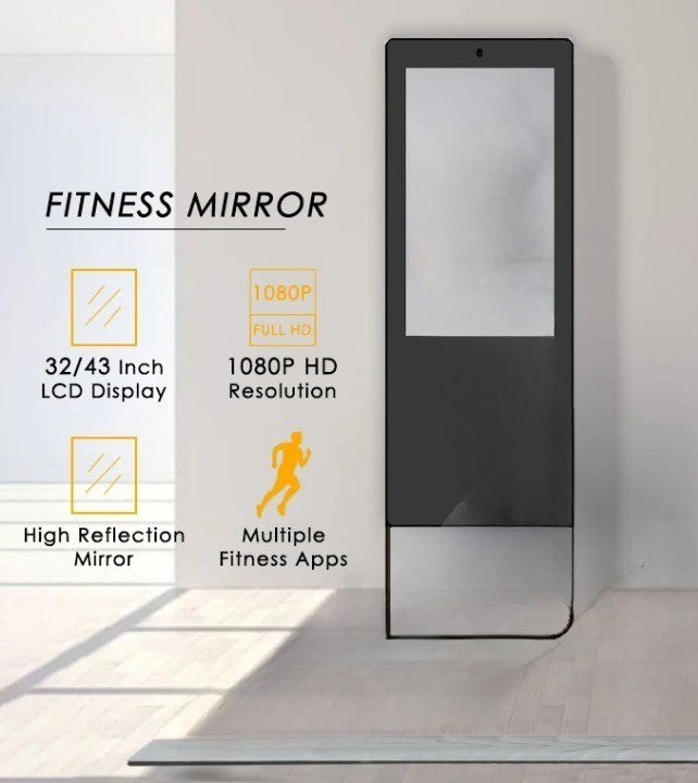 Android Integration: This fitness mirror features an Android system for easy app integration and intuitive use. Navigate through your fitness routine with smart touch controls.
