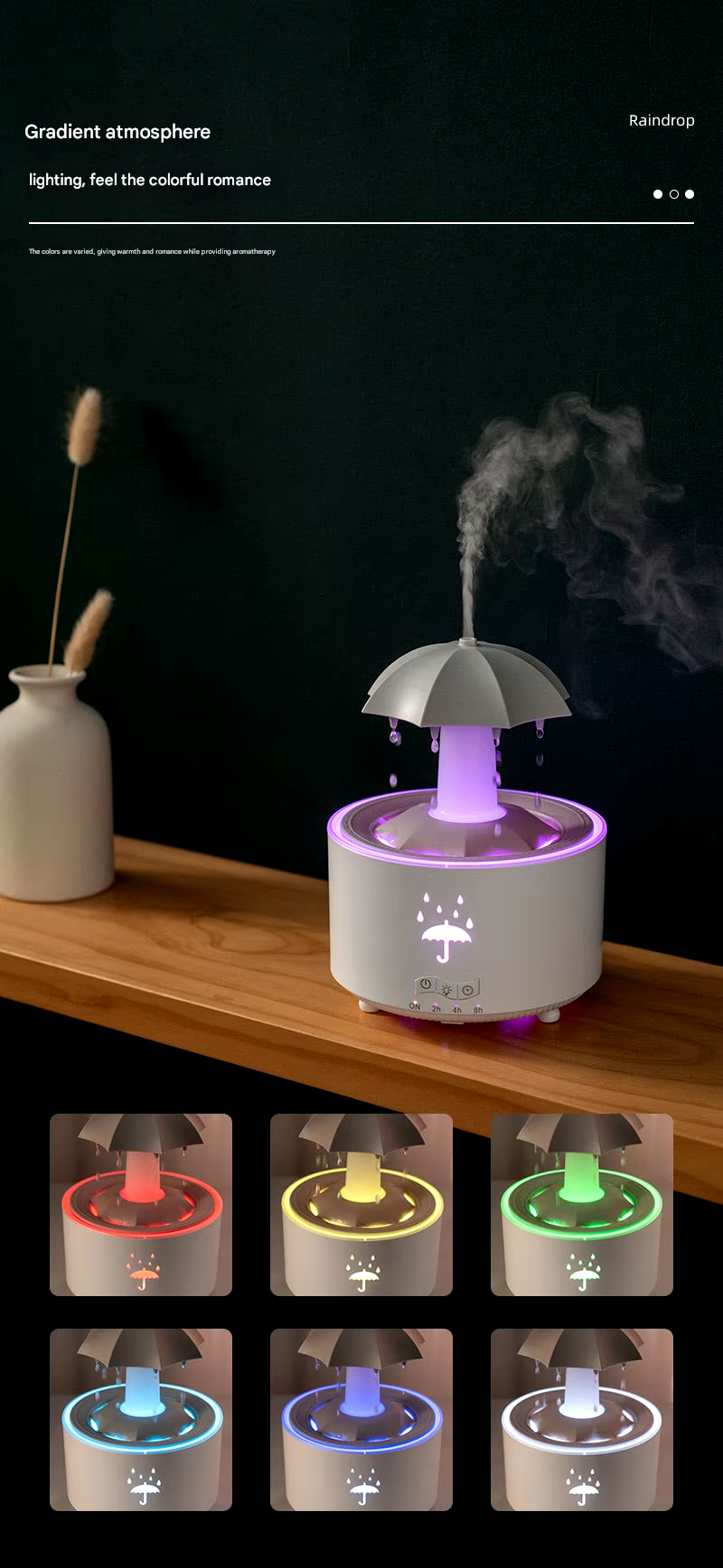 Elevate your indoor ambiance with this unique humidifier that doubles as a stunning decorative piece. Shaped like an umbrella with gentle water droplets, it offers not only improved air quality but also a calming visual aesthetic. Perfect for bedrooms, living rooms, or workspaces, this humidifier adds a touch of charm to any environment.