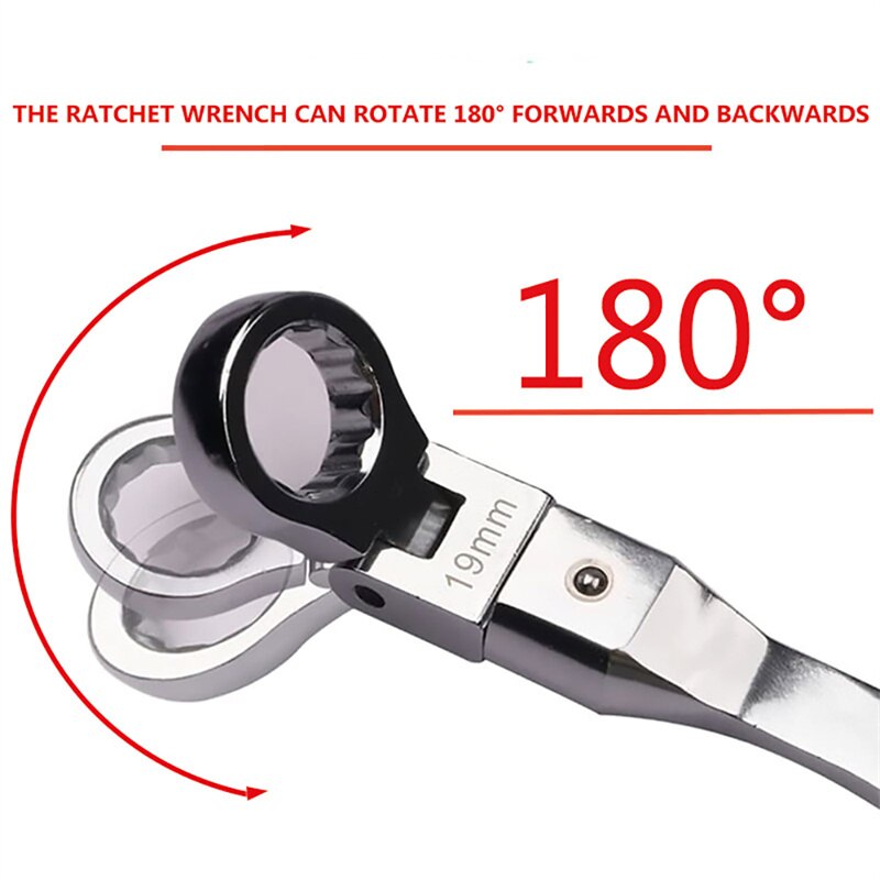 The elbow ratchet combination wrench adopts a precision 72-tooth ratchet, the socket set is quick to disassemble, and the 180-degree rotation is smooth; the head can be slid into the fastener at any angle, which is easier and labor-saving than other wrenches. This ultra-precision ratchet wrench can be used faster in a narrow space than standard wrenches because it allows you to tighten the bolts while continuously meshing with the bolts.