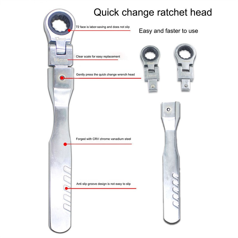 Replaceable Head Design: Press the button, and you can change the wrench specifications you need; easy to operate and easy to install, convenient and beautiful.