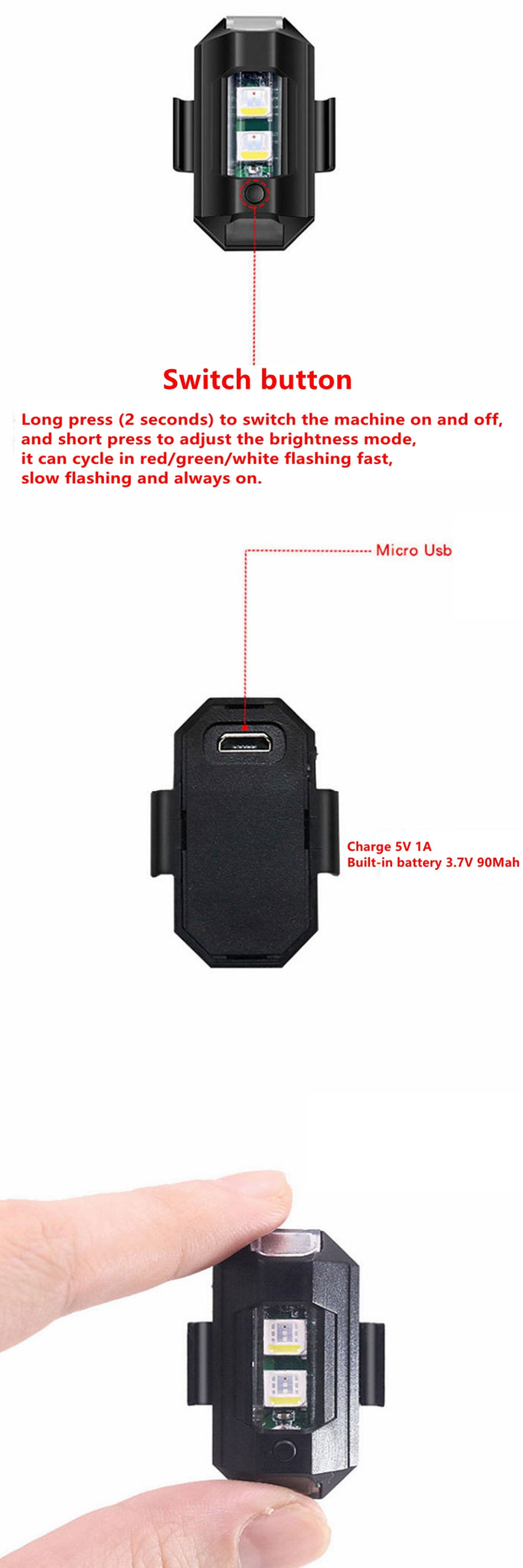• Red/green/white 3 colors, a total of 6 slow/fast flashing modes can be freely adjusted.