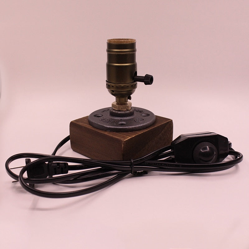 QUALITY: The industrial desk lamp is well constructed from a solid wooden base in dark brown color and steampunk water pipe flange made of wrought iron, fine workmanship, unique shape, your imagination knows no bounds.