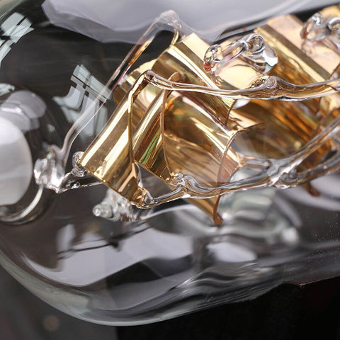 Mini but magnificent ornament with the ship in the wine bottle and wooden stand. The high-quality glass features transparent texture and gives a dreamy and delicate feeling; Nature wood has a mottled surface, adding the retro and stylish touch.