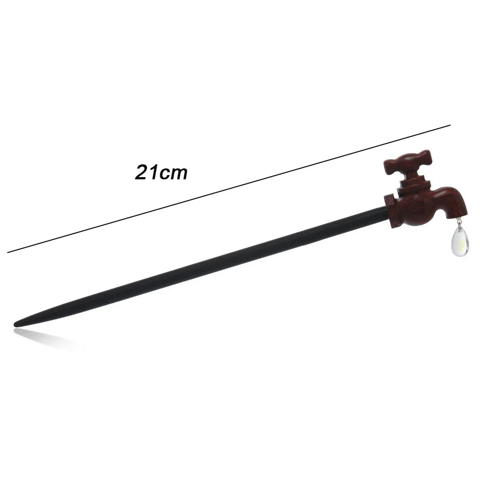 Add a touch of timeless elegance to your hairstyle with this vintage wood faucet water drop hairpin. Crafted from high-quality wood, it features a unique faucet and water drop design, blending classic style with a whimsical touch. Perfect for securing updos or adding a decorative accent to loose hair, this hairpin combines functionality with beauty. Its intricate detailing and natural materials make it a standout accessory for any occasion, bringing a hint of vintage charm to your look.