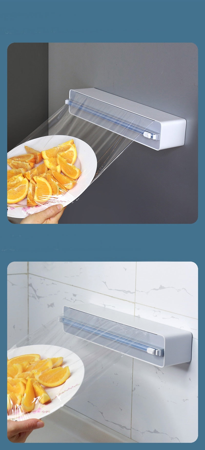 1x Wall-Mounted Adjustable Plastic Wrap Dispenser