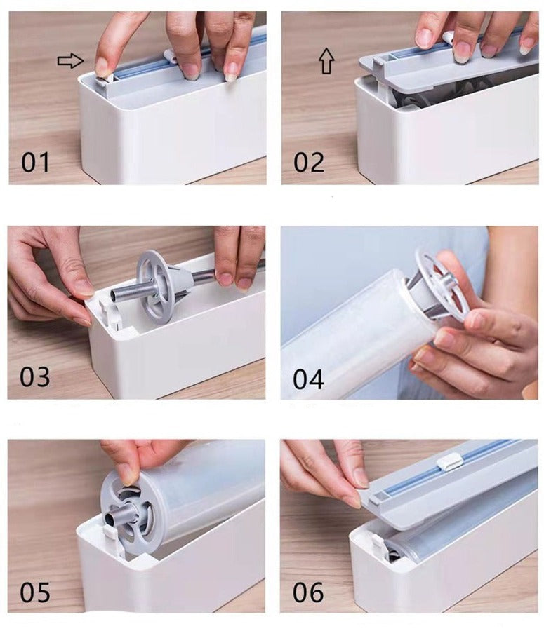 - It is made of ABS material, high temperature and low-temperature resistance, durable, healthy, environmental protection, non-toxic and has no smell. Bidirectional slide cutter button, pull out the amount of wrap you want; you can cut it from left to right or right to left smoothly without using the hazardous hacksaw blade or scissors. The little cutter cuts it perfectly, not folded or stuck to itself plastic over the dish. It can last a long lifetime for home use.