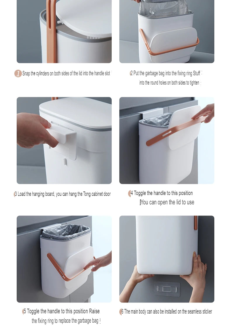 1x Wall-Mounted Modern Large Kitchen Trash Can