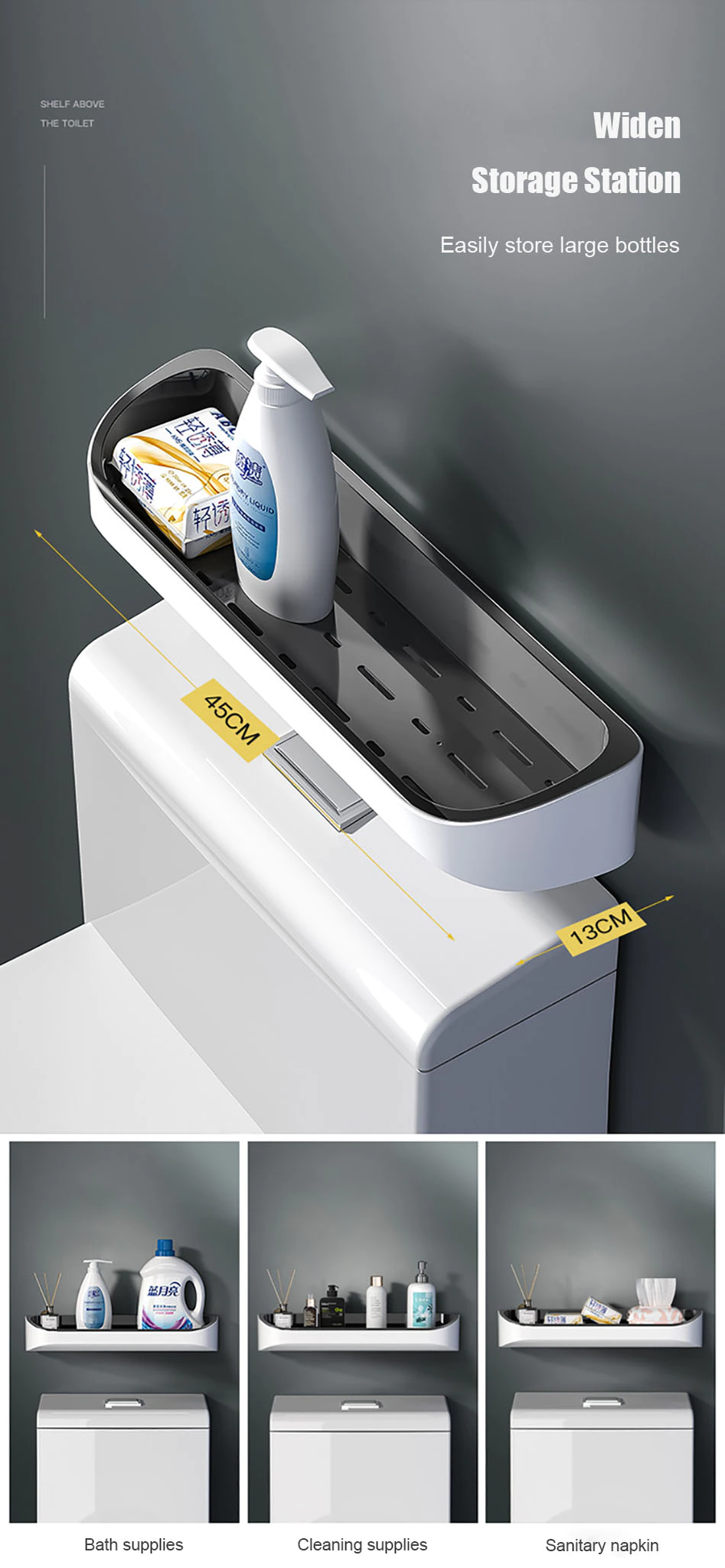 The Wall Mounted Storage Master Bathroom Shelf is the perfect addition to any bathroom. The shelf is made of high-quality materials and designed to hold all your bathroom essentials. The wall-mounted design allows you to save space and keep your bathroom organized and clutter-free. The shelf is easy to install.??