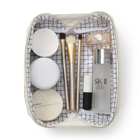 - Keep your cosmetics aesthetically organized in this stylish cotton makeup pouch.