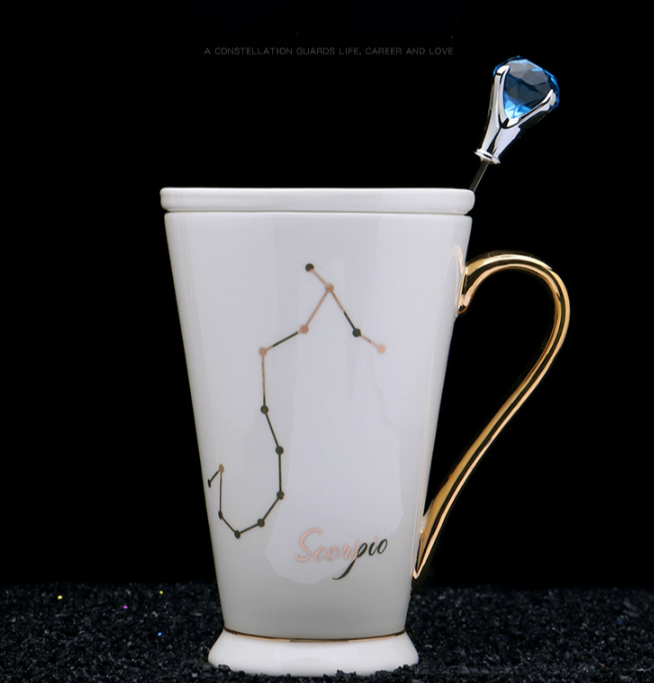1x?White And Gold Ceramic Coffee mugs with Zodiac Signs