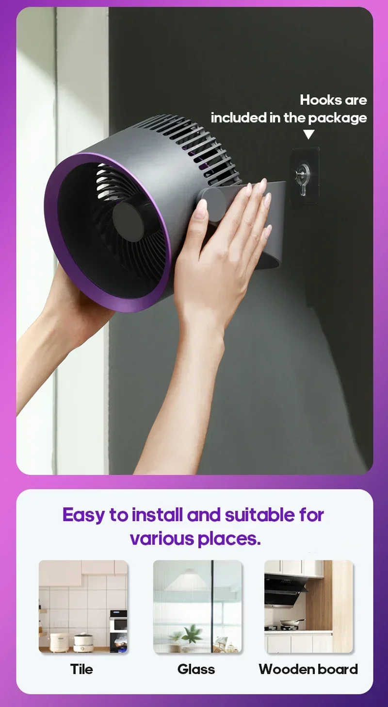 This Multifunctional Electric Fan Circulator is a versatile and convenient cooling solution for your home. Whether you need a fan for your desktop, wall, or ceiling, this portable and wireless fan provides quiet and efficient air circulation. With its sleek design and multiple operating modes, this fan is perfect for keeping you cool in any room.