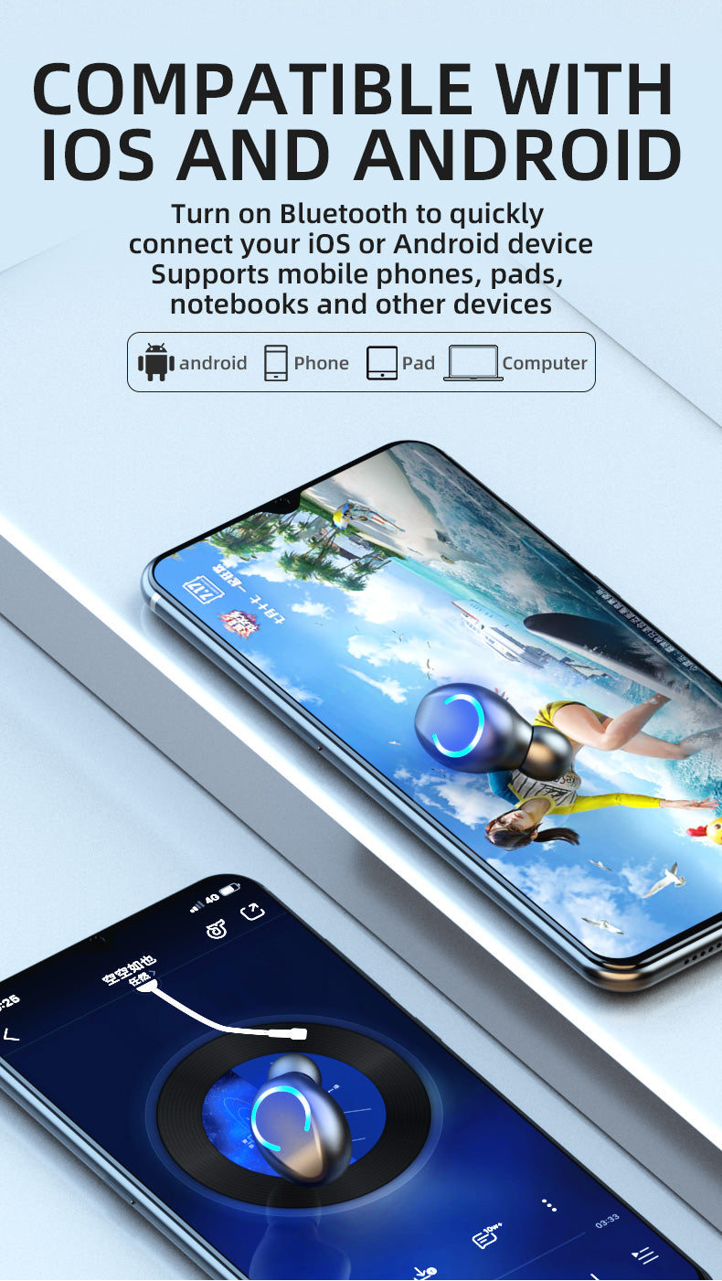 Wireless earbuds in line with ergonomic shape design could perfectly fit with the ear to maintain comfortable wear for a long time. It has a unique design of medical silicone in the ear. Light-weight, when you are working or doing sports, there is no need to worry about falling off. The earphone could provide a strong bass stereo sound, which has a higher definition and is more dynamic.
