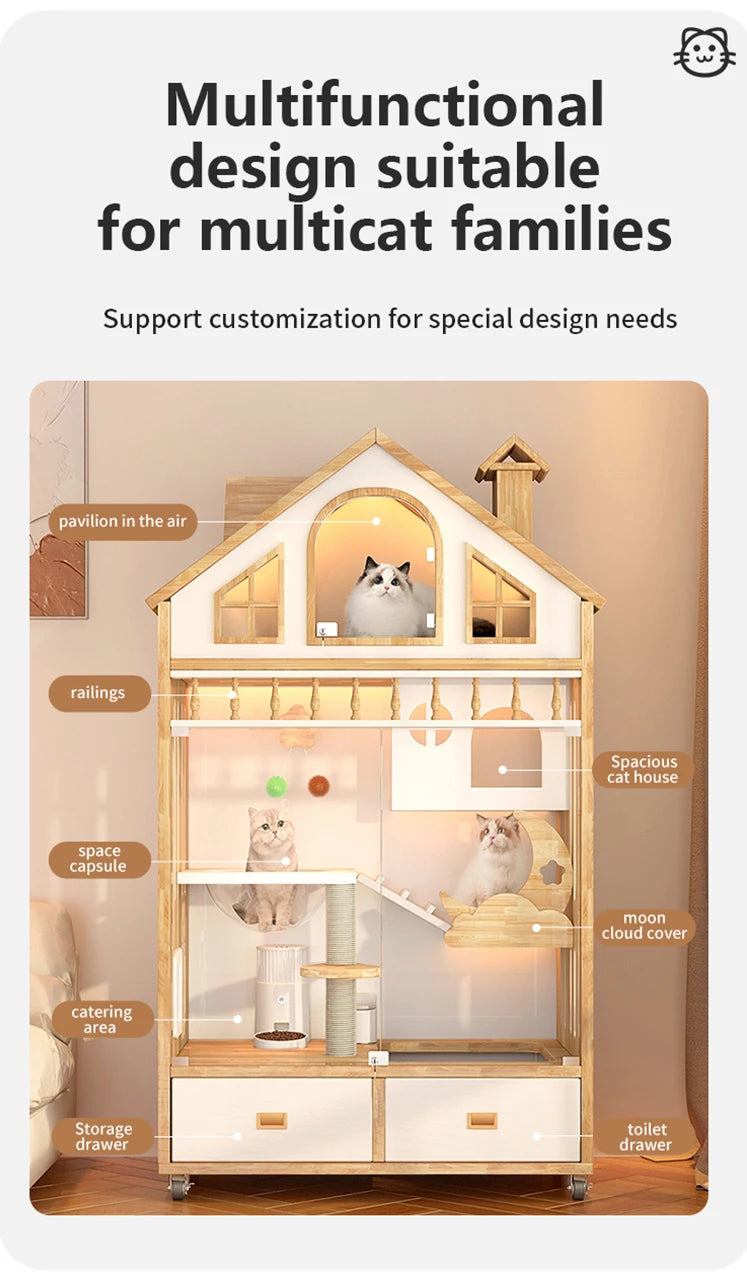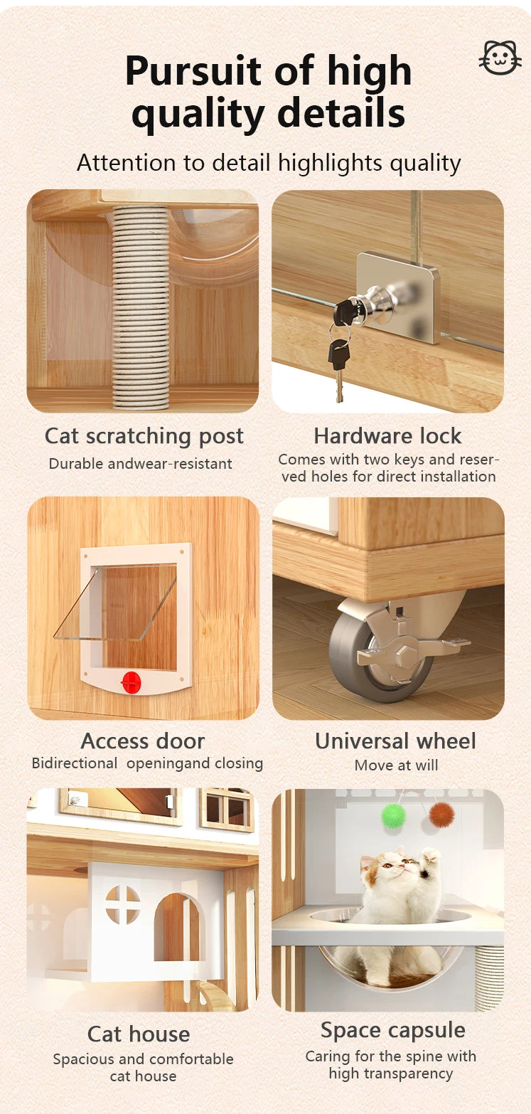 Give your feline friend the royal treatment with this Wooden Luxury Indoor Large Cozy Cat House! Designed to replicate a charming little house, this elegant cat condo is perfect for creating a spacious, multi-level environment that encourages play, rest, and exploration. Featuring multiple floors, nooks, and crannies for climbing, scratching posts, and cozy areas for napping, this cat house is a functional and aesthetic centerpiece for your home. The durable wooden construction blends seamlessly with modern interiors, providing not just a home for your cat but a beautiful furniture piece for your living space.